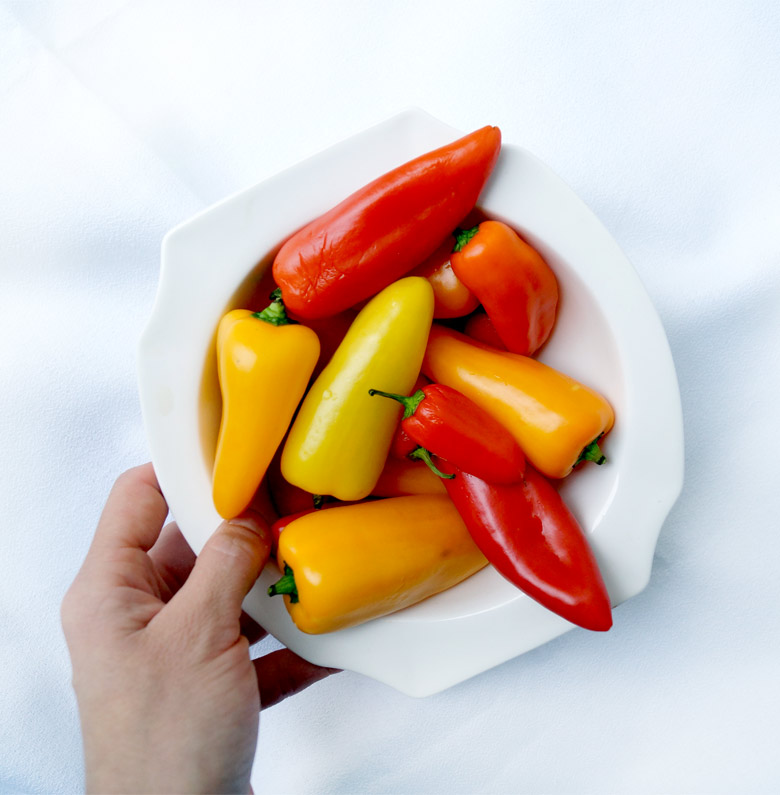 El secreto está en estos mini pimientos "sweet peppers" que son más suaves de sabor, yo los conseguí orgánicos en SAMS pero también pueden probar con pimientos normales. Vale la pena probar los pequeños, la bolsa rinde bastante y además son muy prácticos para omelet, salteados, rellenos y mil ideas más.