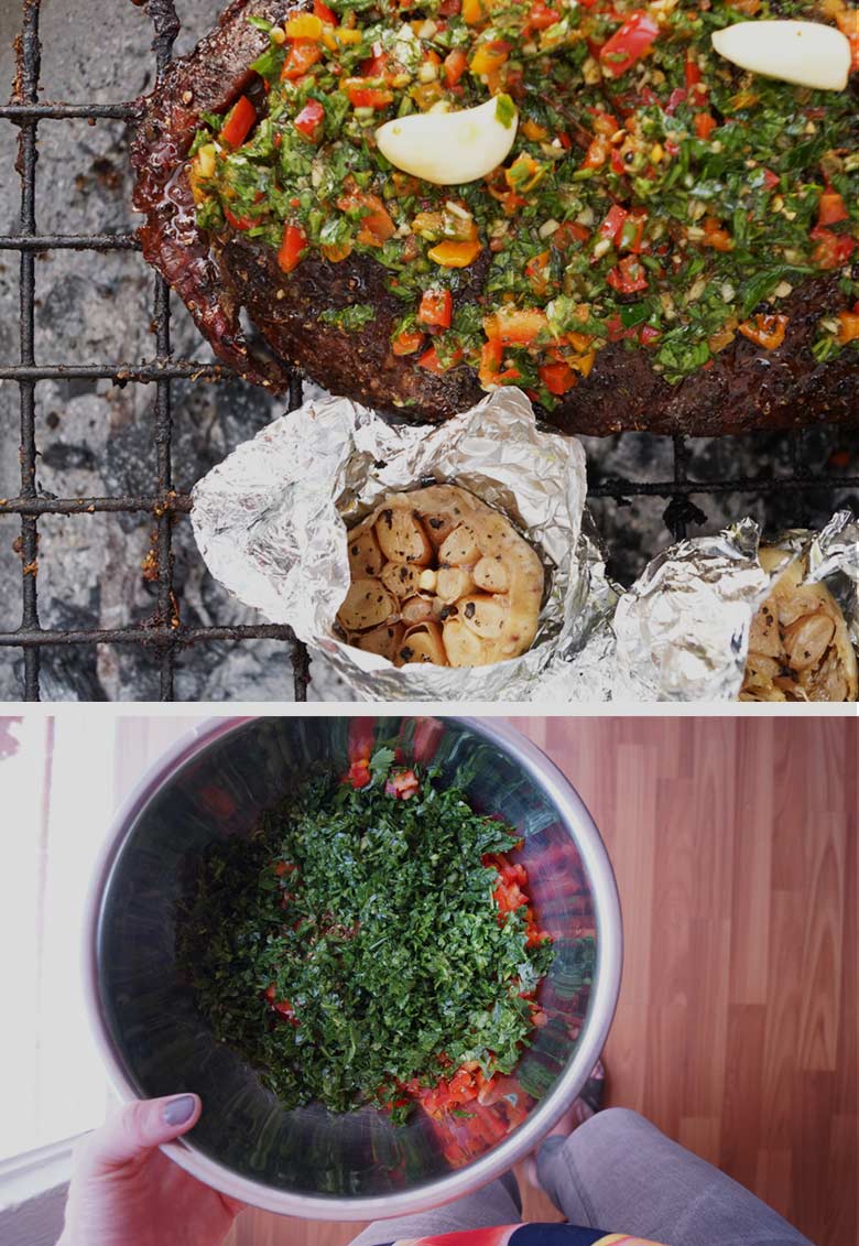 Fresco chimichurri con perejil, pimientos, especias, limón, sal, ajo, vinagre. Más ideas de otras preparaciones aquí en recetas Laylita