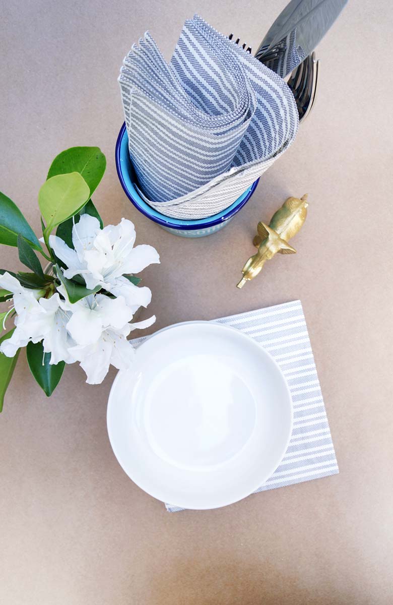 Cuando estoy muy de prisa y no tengo manteles limpios uso papel reciclado. Por más que soy una fanática de las telas lindas y las cosas de diseño, muchas veces un simple pliego de papel reciclado me saca de apuros.